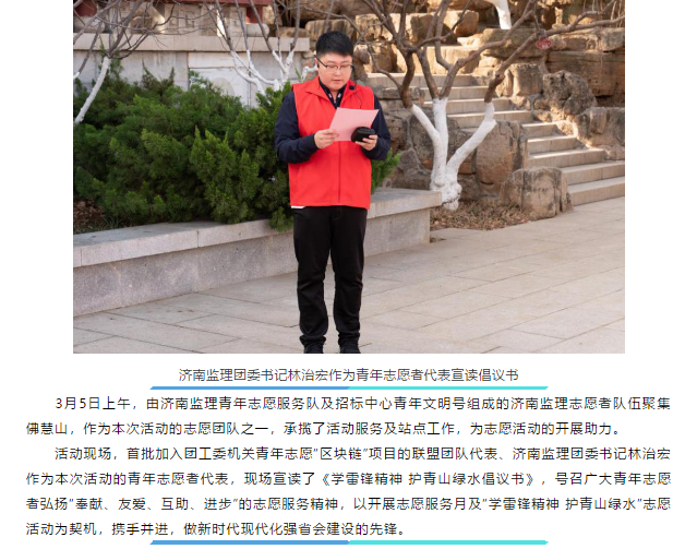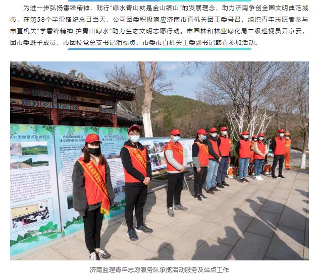 “學雷鋒精神 護青山綠水”——濟南監理青年志愿者參加市直機關團工委助力生態文明志愿行動