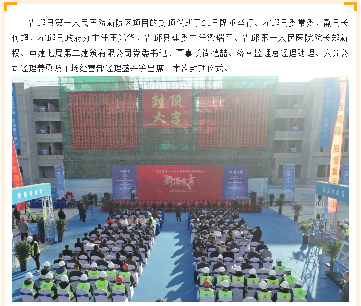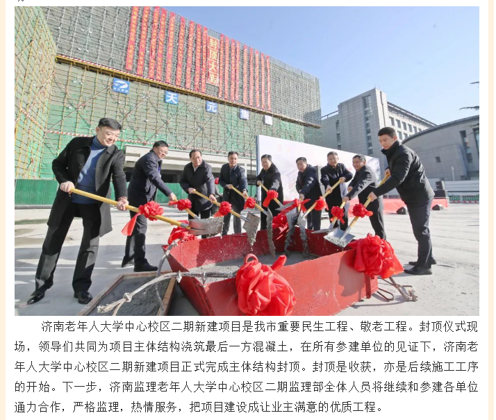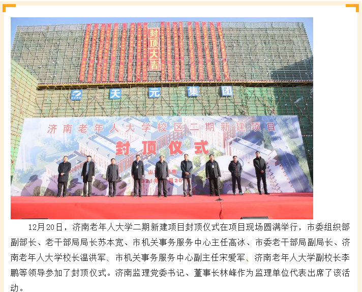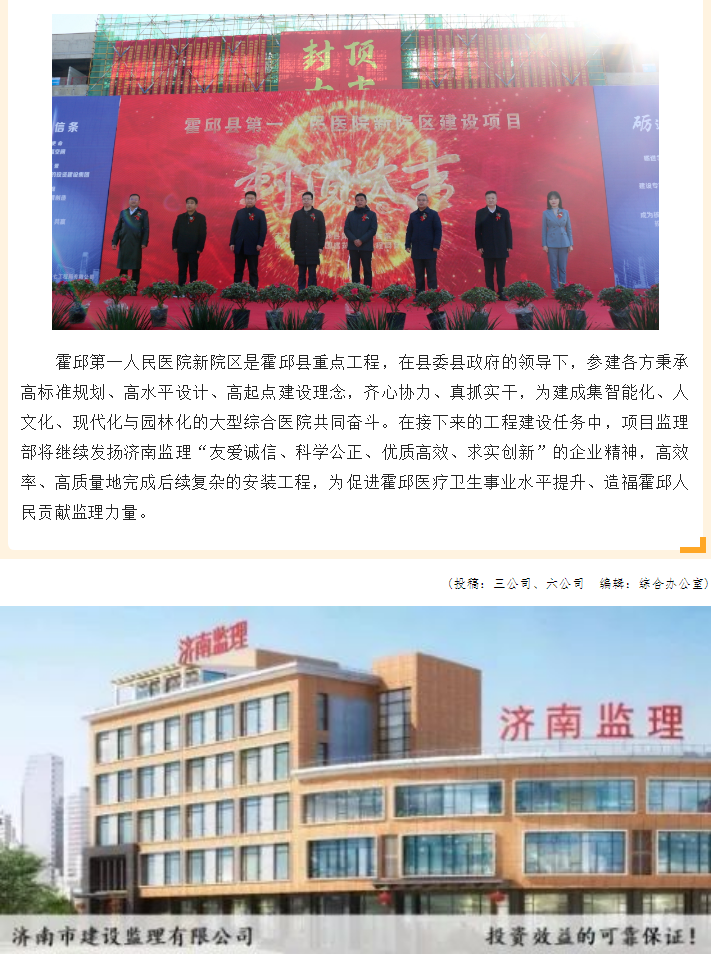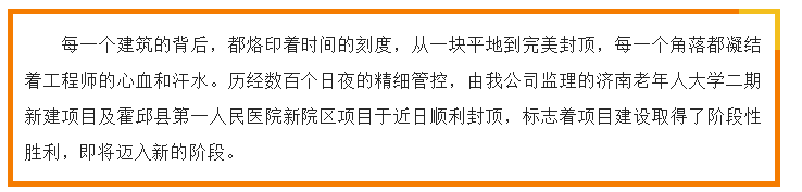 匠心傾注 喜封金頂——我公司監理的濟南老年人大學二期新建項目及霍邱縣第一人民醫院新院區項目順利封頂
