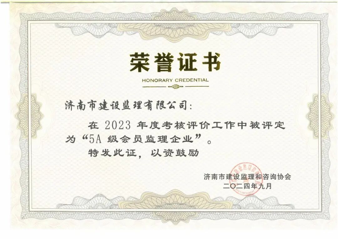 喜報!濟南監(jiān)理榮獲中國工程監(jiān)理AAA級信用企業(yè)及濟南市5A級會員監(jiān)理企業(yè)